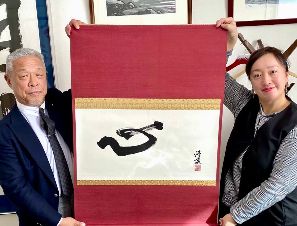 文部科学大臣賞受賞の千葉清藍先生に【心】を揮毫していただきました