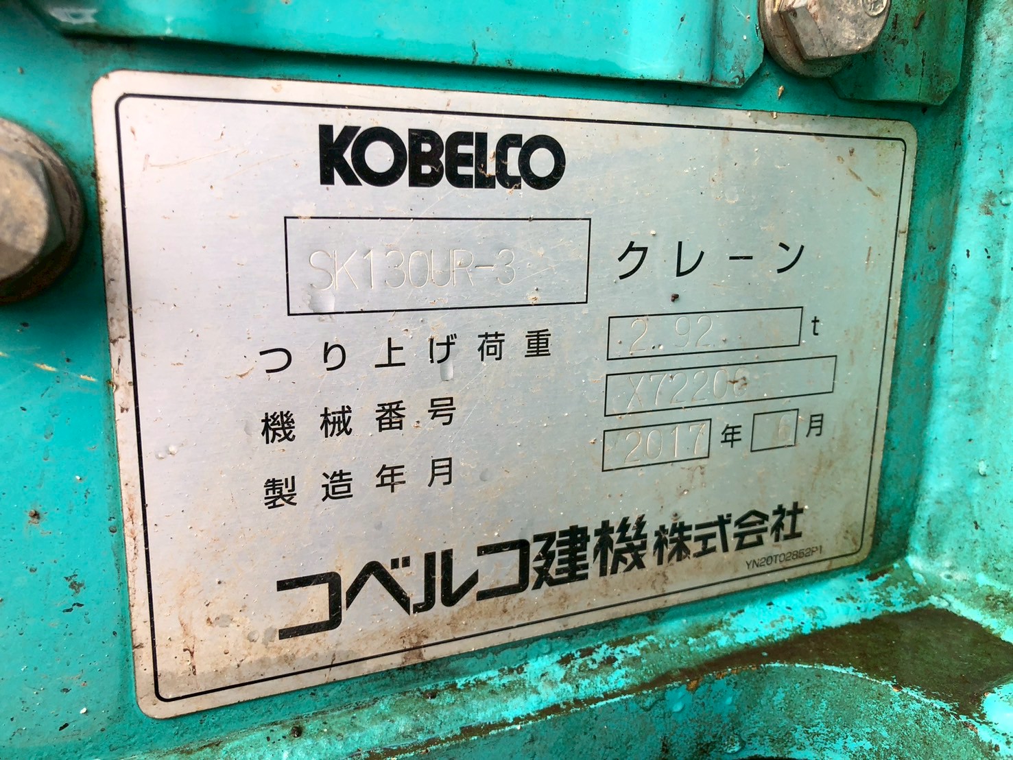 | アワーメーター | 1,981Hr | S/No. | YX07-03354 |